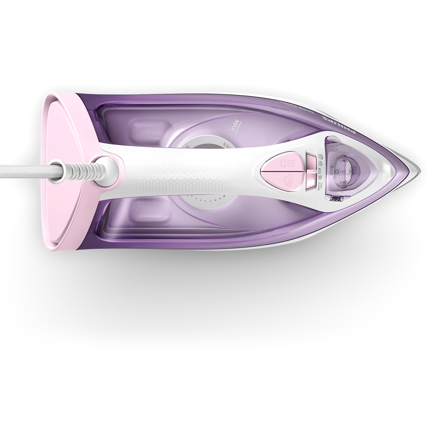 This Philips 3000 Series steam iron makes ironing easier and more efficient. With powerful steam output and a smooth ceramic soleplate, it tackles wrinkles across a wide variety of fabrics. The drip-stop system protects delicate garments, and the built-in calc-clean feature ensures your iron stays in top condition—even with everyday tap water. The generous water tank and fast heating reduce interruptions, while vertical steam lets you freshen clothes directly on the hanger.