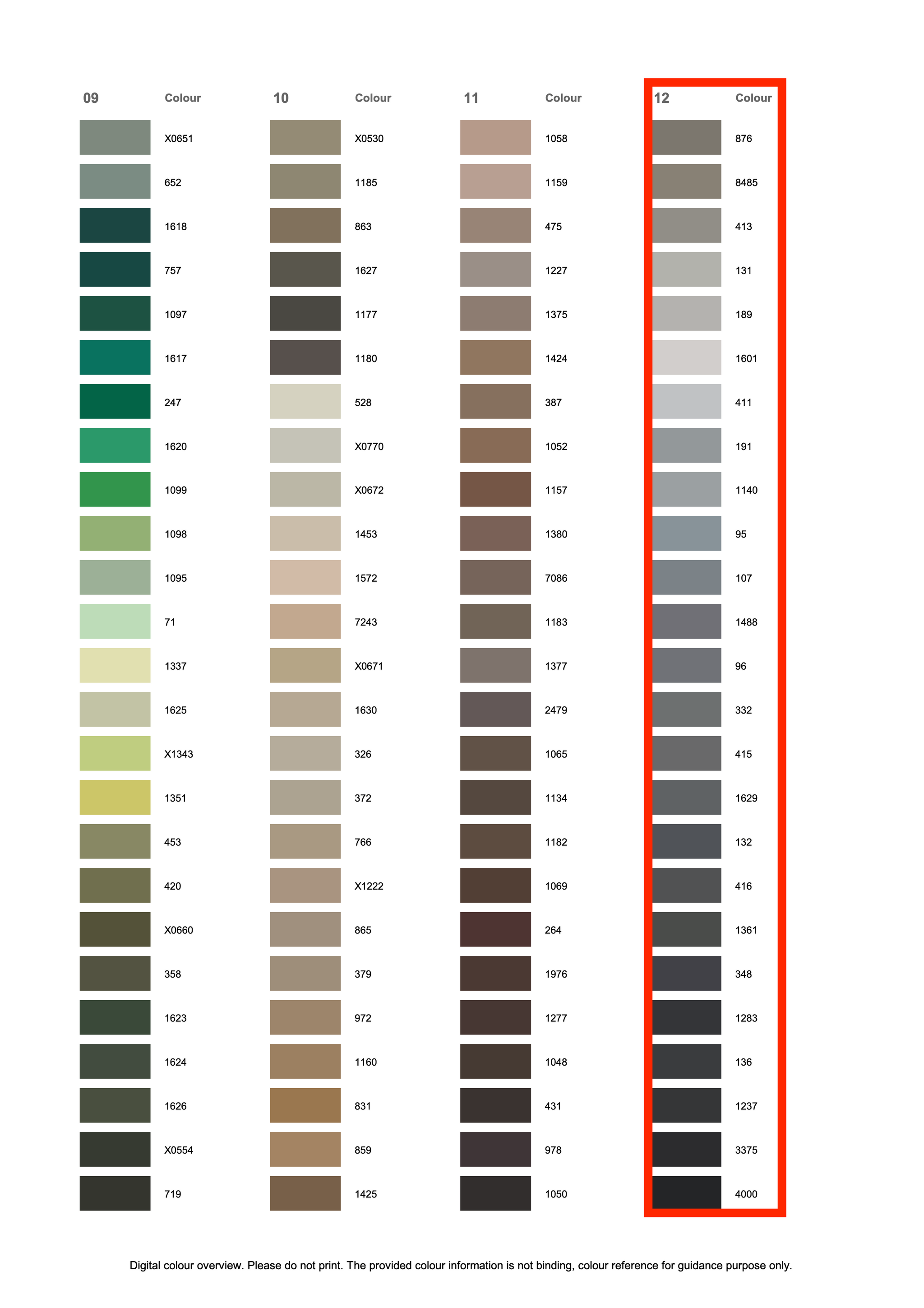 This listing is for colours in Group 5 of the Rasant 120 colour card