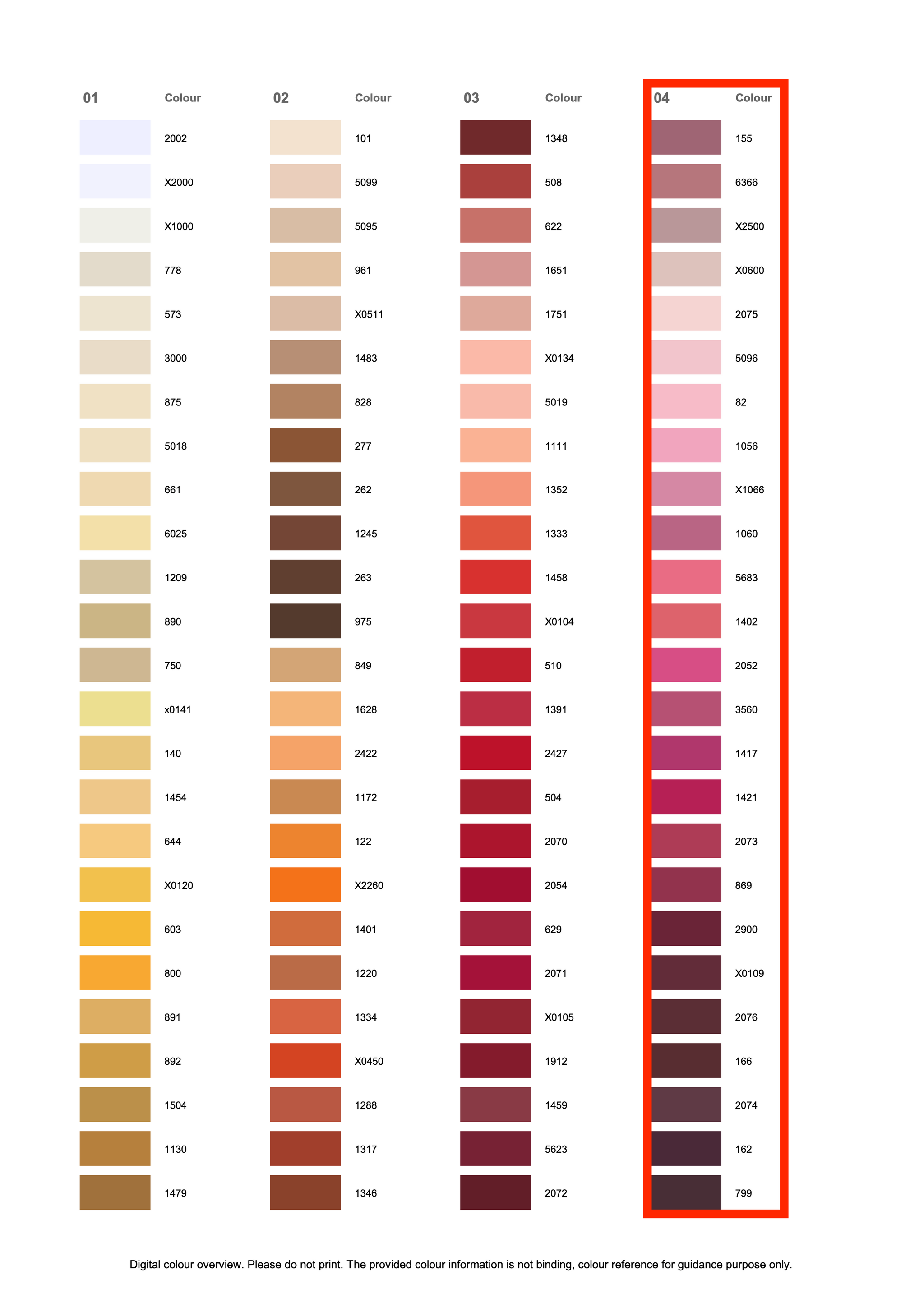 This listing is for colours in Group 4 of the Rasant 120 colour card