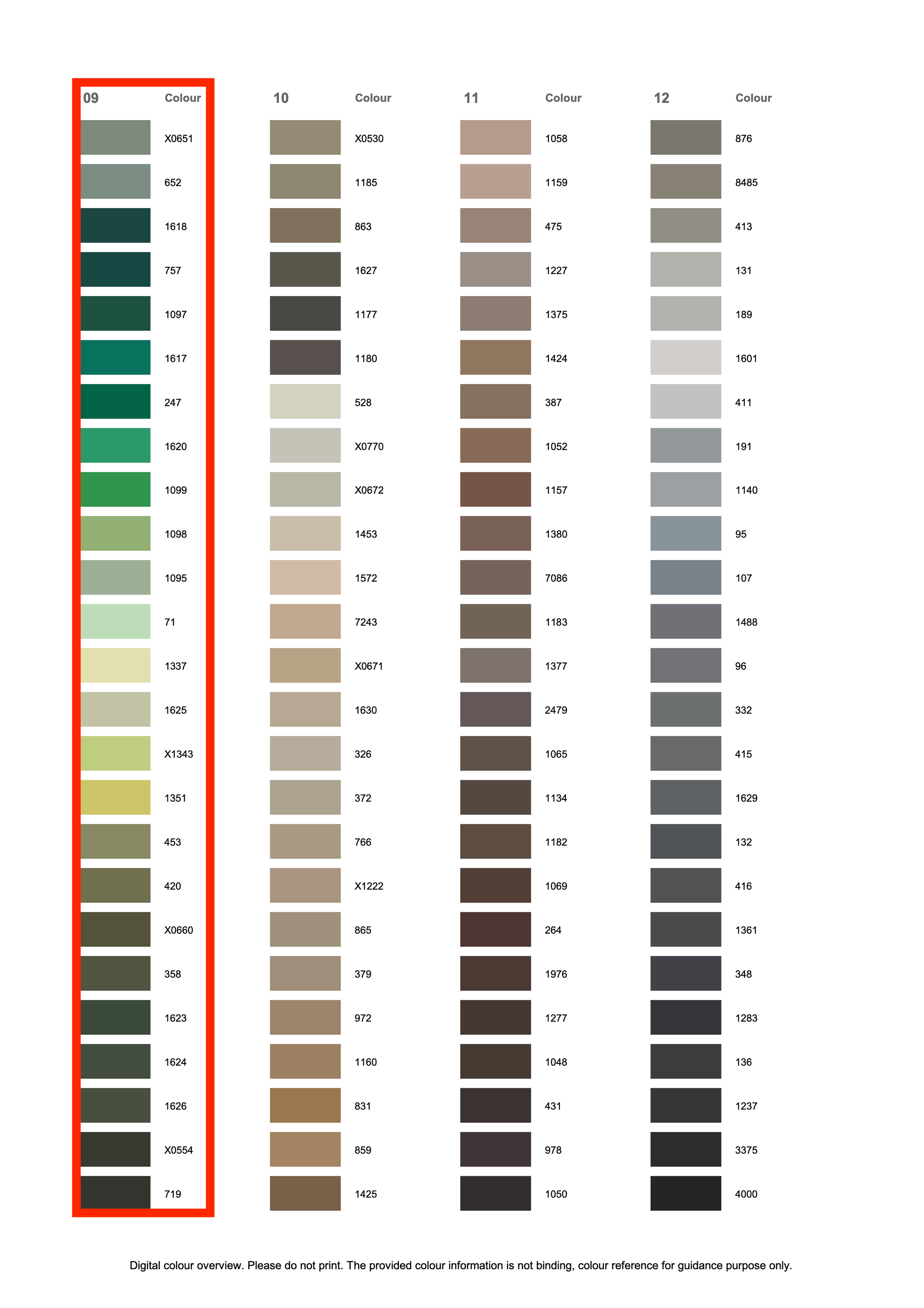This listing is for colours in Group 5 of the Rasant 120 colour card