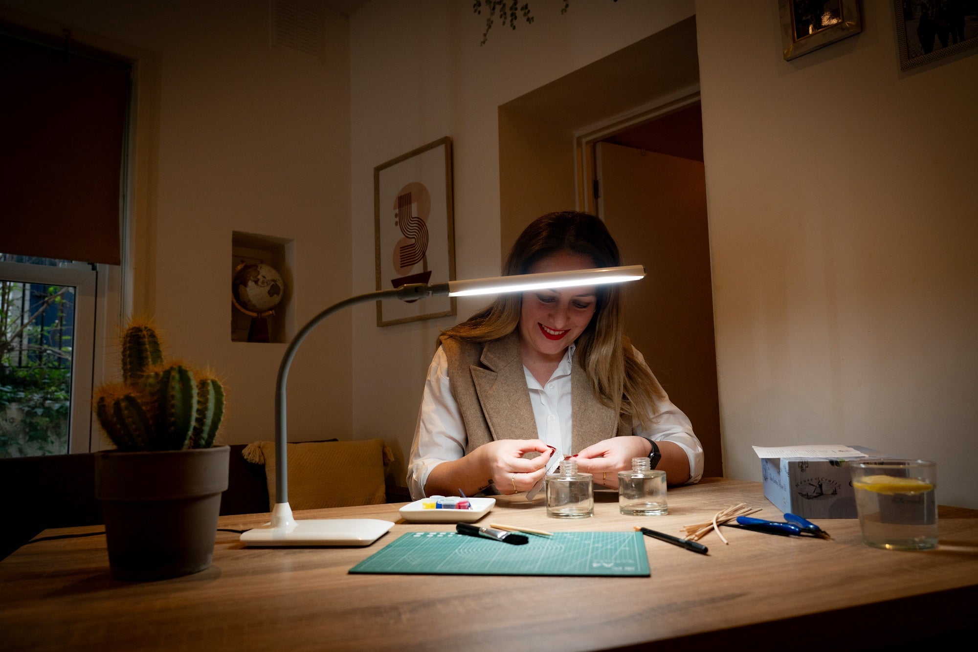 Light up your workspace with our UnoPro Table Lamp, a bright and flexible lamp with high-quality daylight LEDs and 95+ CRI for true-tone colors. The anti-glare shade promotes an ergonomic work environment, with a pivoting head joint and soft-touch flexible arm to direct the light wherever needed.