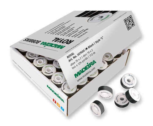 Madeira Prewound ROYAL Embroidery L Bobbins No. 150, Box of 144