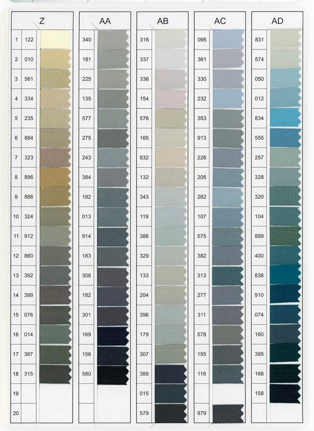 View the YKK Colour Card: HERE
